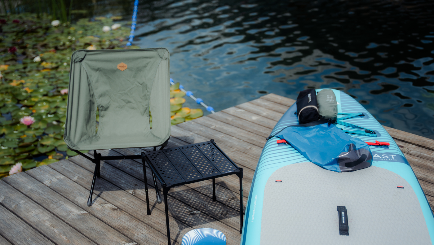 Whether kayaking, SUPing, or surfing—anyone out on the water needs gear that can keep up. The Lasse Light camping chair from snowline is your ideal companion: ultralight 710g, quick to set up, and with 11 x 11 x 34cm so compact that it even fits in a kayak.