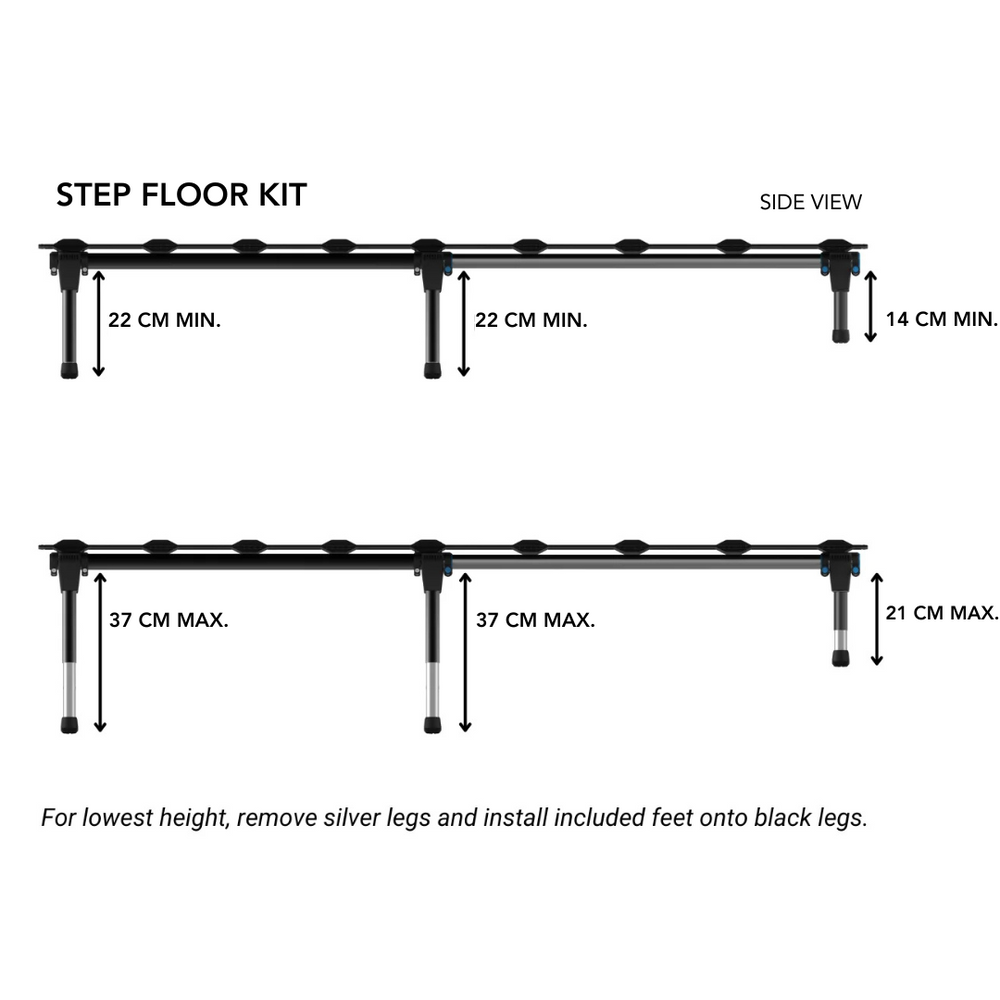 - Uneven Floor/ Step Floor Leg Set: approx. 21.5 – 31.8 cm