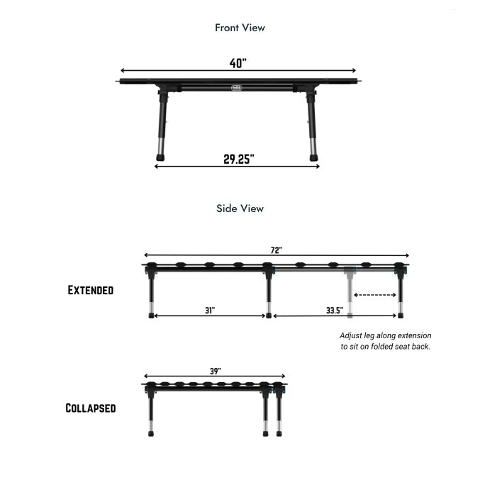 Ganz einfach höhenverstellbare Beine passen sich jedem Fahrzeugboden an und schaffen dabei großzügigen praktischen Stauraum unter der Liegefläche für Ausrüstung.