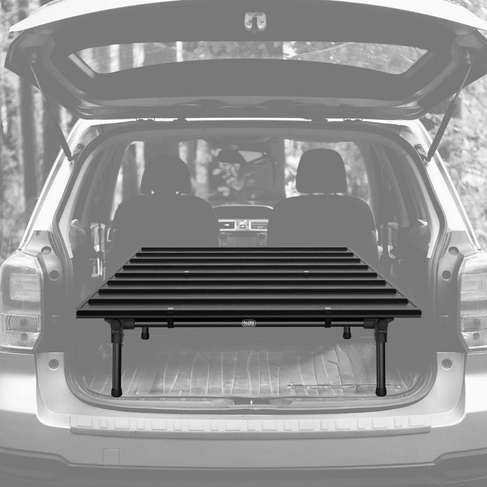 Das Hideaway XL ist unser größtes Camper Bett – perfekt für alle, die es gerne geräumig haben. Mit einer Breite von ca. 122 cm passt es ideal für Standard 2+ Personen-Isomatten oder aufblasbare Queen-Size Matratzen. Es bietet eine durchgehende, ebene Liegefläche von Wand zu Wand und ist damit die perfekte Lösung für große SUVs und Vans.